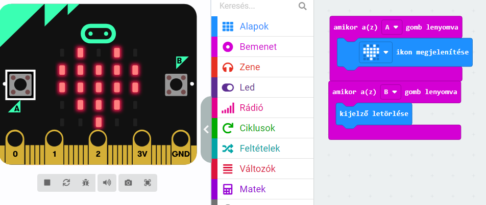 - Kattints az A vagy B gombra rajta, és nézd meg, hogyan működik a programod. (Azonnal látod, hogyan reagálna a valódi eszköz.)