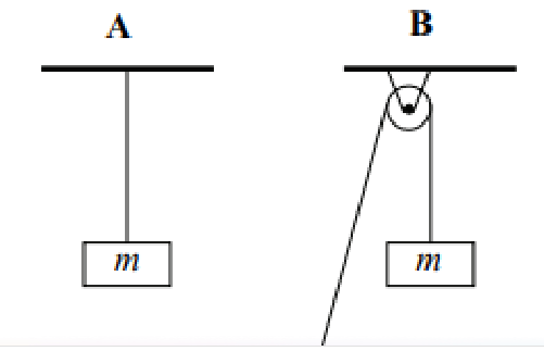 Indoklás: Mindkét esetben a test súlyát tartja a kötél → kötélerő = mg.