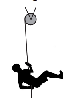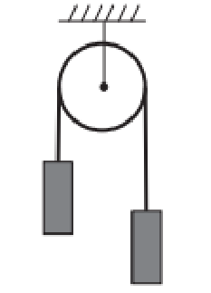 27. Két testet akasztunk egy csigákon átvetett kötélre az ábrán látható módon, és elengedjük őket. Tudjuk, hogy a nagyobbik test nehezebb, mint a kisebb. Mi fog történni?