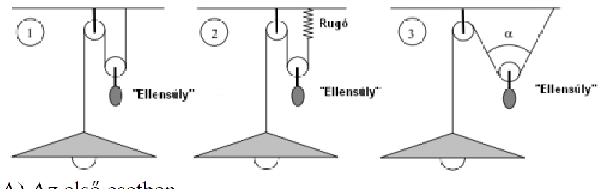 Indoklás: A csigarendszer hatékonyabb → kisebb ellensúly is elegendő az egyensúlyhoz. Az ellensúly azért hatékony, mert csökkenti az emeléshez szükséges erőt.