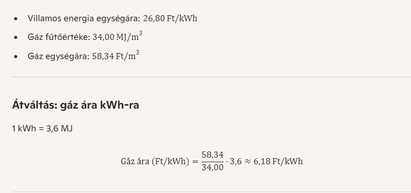 Villany- és gázüzemű vízmelegítő közül kell választani. A döntés szempontja az energiaegységárak összehasonlítása (veszteségeket azonosnak tekintjük).