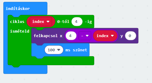 - Ciklus jobbról balra ismételd x = 4-től 0-ig lépésenként -1 (vagy: "ciklus visszafelé")