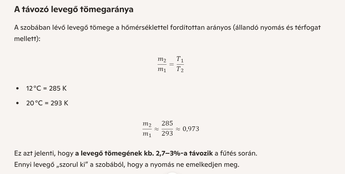 A levegő tömege kicsit csökken, mert a melegedő levegő egy része kiszorul a réseken át.