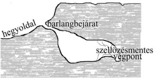 b) A hideg levegő nehezebb, ezért lefelé áramlik és befolyik a barlangba.