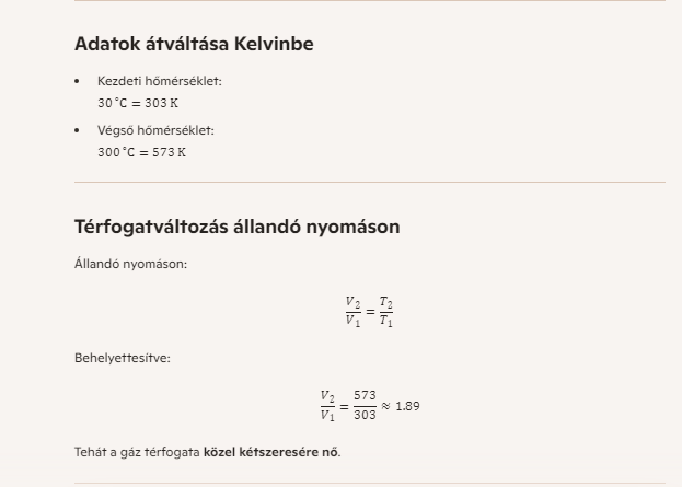 Válasz: C A térfogat nem kétszereződik, csak arányosan nő a kelvin-skálán.