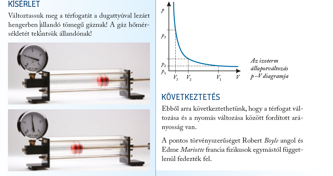 Jelenség: A hőmérséklet állandó, a térfogat és a nyomás változik.
